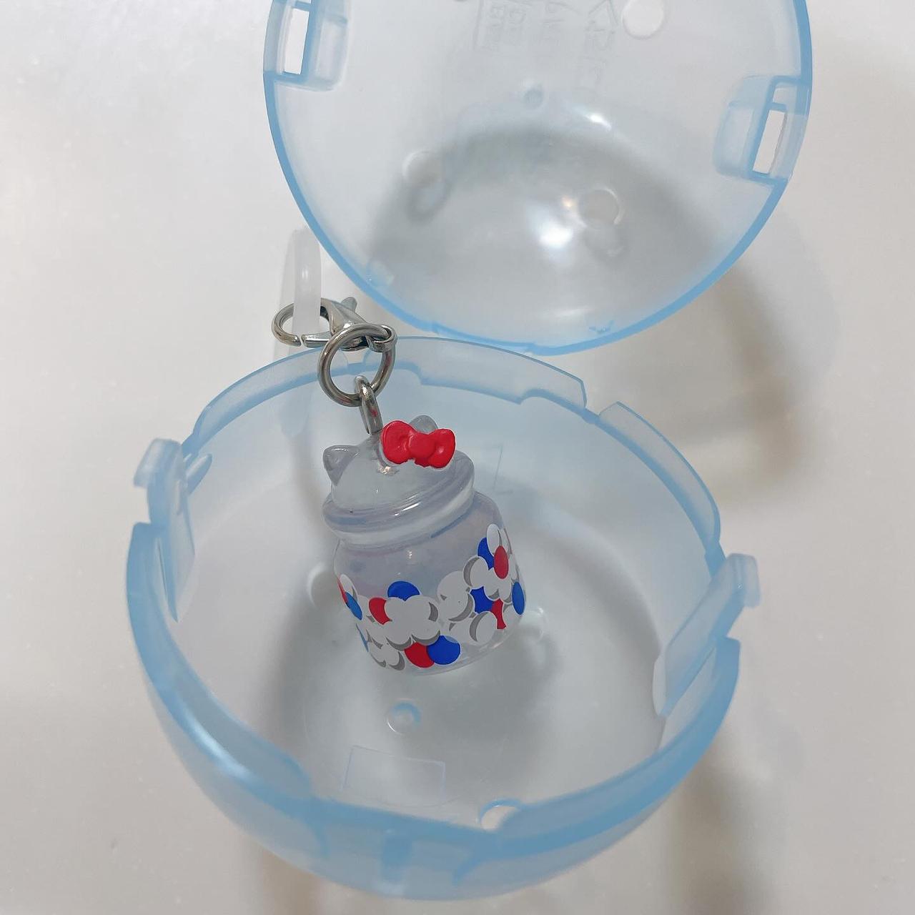 「モンチッチ × ハローキティ めじるしアクセサリー」は、モンチッチとキティのコラボが楽しめるシリーズ。全5種類のラインナップは全てシリコンリング付きなので、傘の取っ手に付けておけば可愛い目印になります。@gnm.aoさんは、狙っていた「ハローキティ型のビン」を見事に引き当てられたようです。