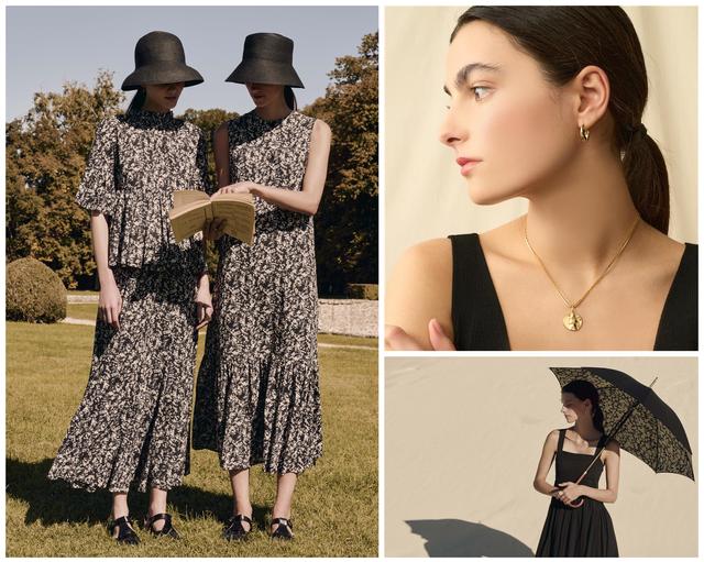 【MARIHA】らしい、ふとした動きで揺らめくエレガントなワンピースのほか、優雅なフレアスリーブのブラウスも印象的。日常からバカンスまで、大人のさまざまなシーンを優美に凛と彩ります。