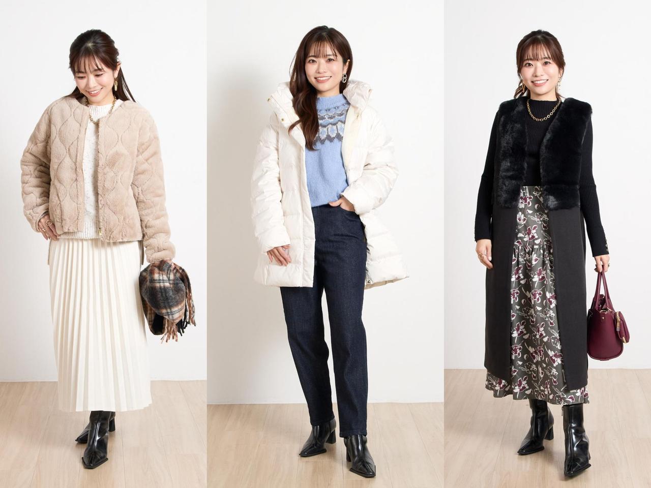 『ジレは華やかになるし、暖かいし、体型カバーもしてくれるので、低身長さんにオススメのアイテム。しかも、このジレは縦ラインをすらっと強調しつつ、顔周りにファーがあるので、目線は上にあがるデザイン。低身長さんにとってバランスがとりやすい最強アイテムかも』