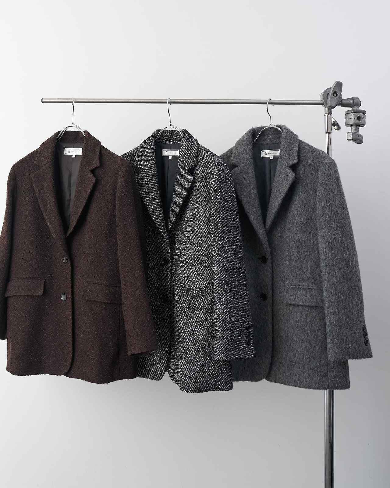 ツイード調の上品な素材が、秋冬ムードを加速させるジャコット。スタッフのwancyanさんによると「本格的な冬コートの前に羽織りやすい軽いアウター」とのこと。テーラードカラーできちんと見えするので、通勤コーデにもマッチしそうです。カラーはダークブラウンとブラックのシックな2色をラインナップ。