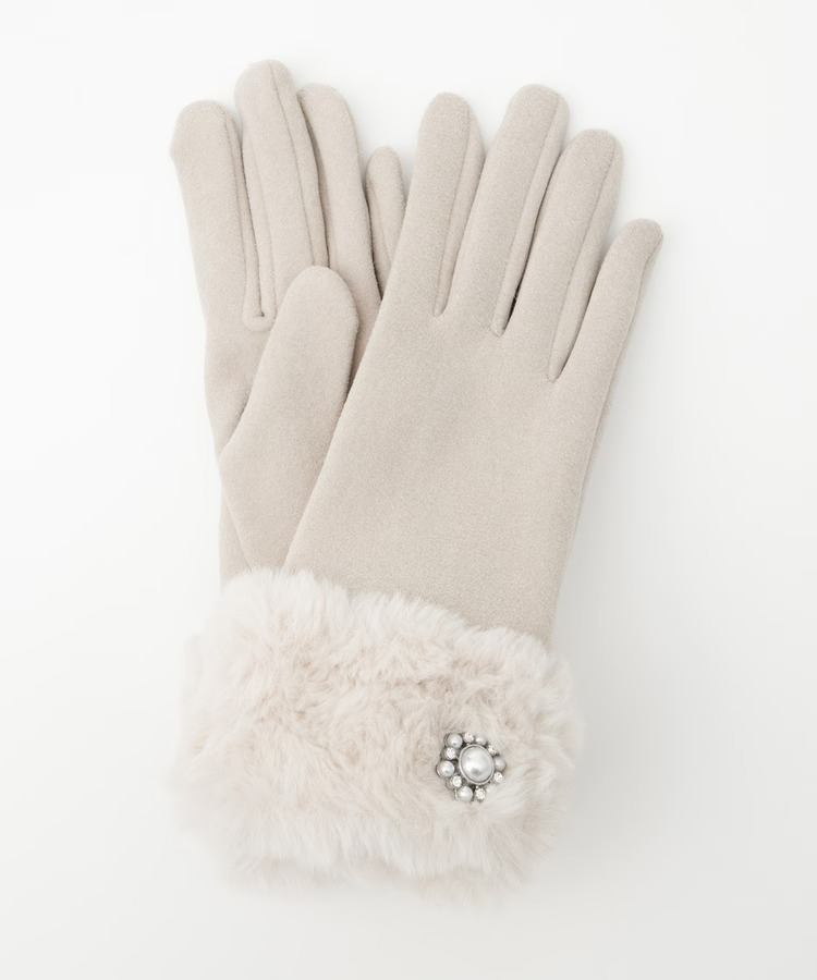 さり気なく輝くモチーフが、ワンポイントになる手袋。ふんわりとしたフェイクファーも、華やかに冬ムードを盛り上げます。裏地のフリース素材は吸湿発熱機能付きで、あたたかく使えそうです。ライトベージュ・グレー・ダークブラウンという上品な色展開で、通勤のきれいめコーデとも好相性。