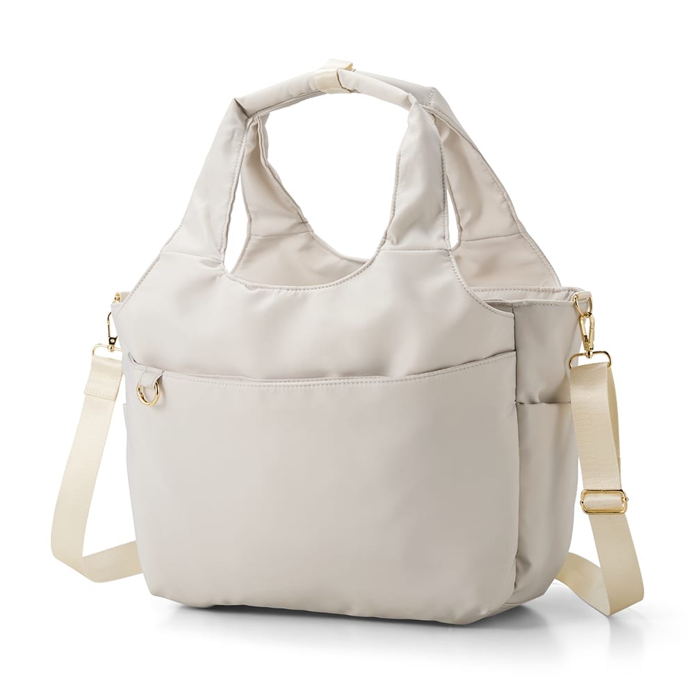 シーンや荷物の量に合わせて、トート・ショルダー・リュックの3WAYで使えるバッグ。撥水機能で雨の日も使いやすいだけでなく、防汚機能で親水性の汚れが付着しにくくなっています。スーツケースの上に固定でき、旅行でも活躍しそう。ポケットは全部で16個もあり、物を整理しやすいのも魅力です。