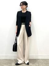 清涼感のあるリネン混パンツは、今から夏まで頼りになりそう。フロントにタックを施した立体的なシルエットで、レッグラインをきれいに見せながら自然な抜け感を演出します。ウエストは後ろゴムですっきり仕上げているため、きれいめコーデにもすんなりマッチ。同素材のジャケットと合わせたセットアップ風スタイルのほか、春夏らしいブルーやイエローのトップスで爽やかに仕上げるのもおすすめ。