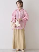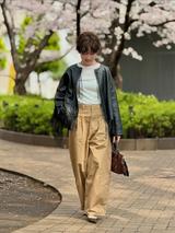 こちらはベージュカラーでまとめられた、トレンドライクなコーディネートですね。インナーはホワイトシャツなので、程よい抜け感も感じられます。冬は濃いブラウンのインナーを合わせると、より季節感が出せそうですね。