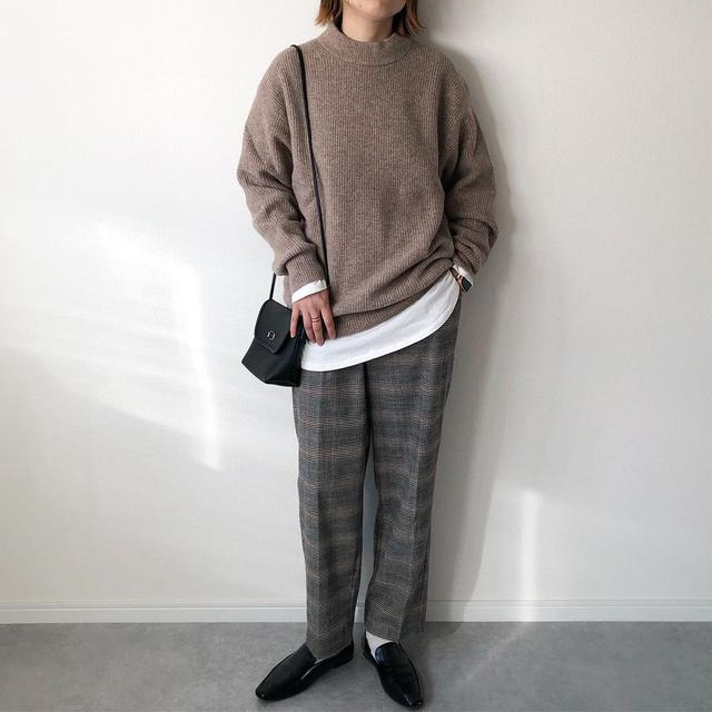 ロング丈のニットワンピは重さが気になる事が多いですよね。スフレヤーンタートルネックワンピは軽い着心地で着ていて疲れないと好評なアイテムです。ゆるシルエットが今っぽく、1枚でもレイヤードでも活躍する万能なワンピースですよ。