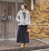 縦に並んだフロントボタンがコーデのいいアクセントになるビスチェ。シンプルなデザインと落ち着いた発色で初心者も大人もコーデに取り入れやすいビスチェは、GUのスタッフさんのようにロングシャツにレイヤードするのもおすすめ。おしゃれに見えるだけじゃなく、メリハリ感が出てスタイルアップ効果も望めます。