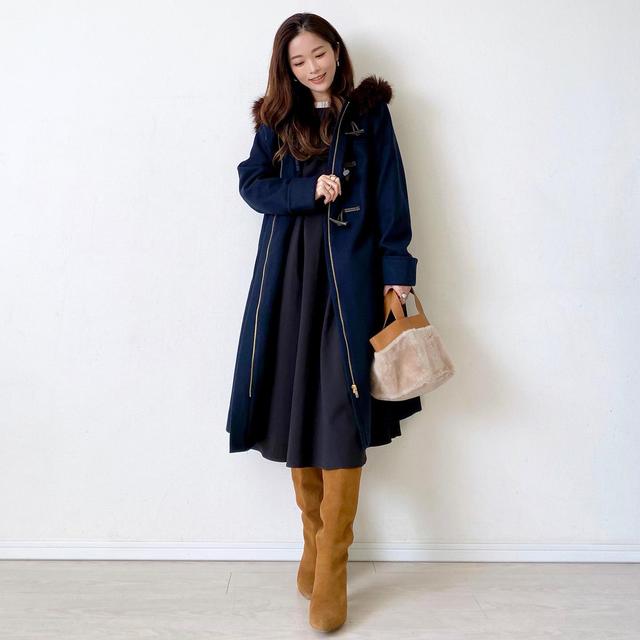 トラッドなムードをまとってトレンドライクなコーデを楽しめる【LAISSE PASSE(レッセ・パッセ)】の「ダッフルコート」。きちんと見えするネイビーカラーとリッチなフードファーで、上品に大人っぽく着こなせるのが魅力。ftnアイコン@ma_anmiさんも「何にでも合わせやすいカラーで場所を選ばず着られるから間違い無いです」とのこと。