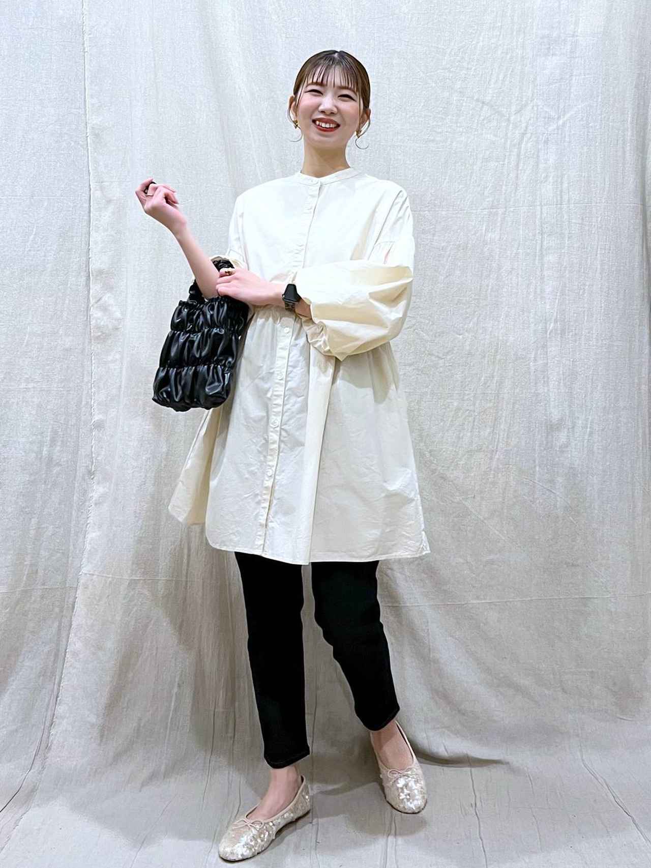 再燃中のロングブーツを合わせて、トレンドコーデを楽しんでいた冬。少しずつ暖かくなってきたこれからの季節の足元は、バレエシューズがおすすめ。フェミニンな要素をプラスして旬度アップ、キラキラ光るスパンコールが春ムードも高めます。【グローバルワーク】のスタッフさんのようにチュニックトップスを合わせると、体型カバーもバッチリ◎