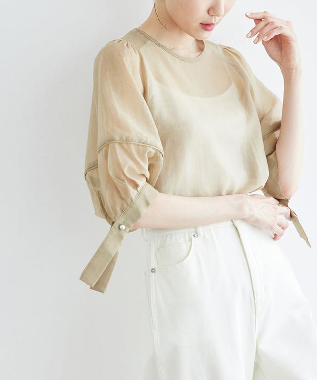 程よい透け感のあるシアー素材を採用、ベールをまとったような着こなしが叶うブラウスは、美人見えを狙いたい夏コーデの即戦力になりそう。肩にタックを入れた立体感のあるシルエットやカフスのフリルデザインが、上品な華やかさも演出。主役級トップスを投入すると、ワンツーコーデもおしゃれに垢抜けそうです。