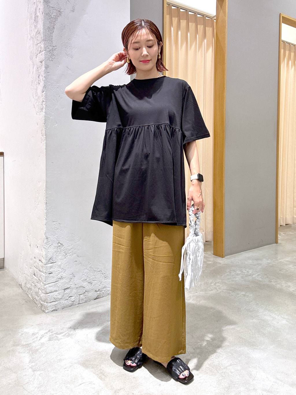 シンプルなデザインなので、ちょっぴり大胆なアクセサリーと組み合わせてもオシャレ。スタッフさんのように、ビーズビスチェを重ねるとほど良いアクセントになって垢抜けたスタイリングに。着丈が短めのビスチェを投入することで、ウエストの位置が高く見え、スタイルアップ効果も期待できそうです。