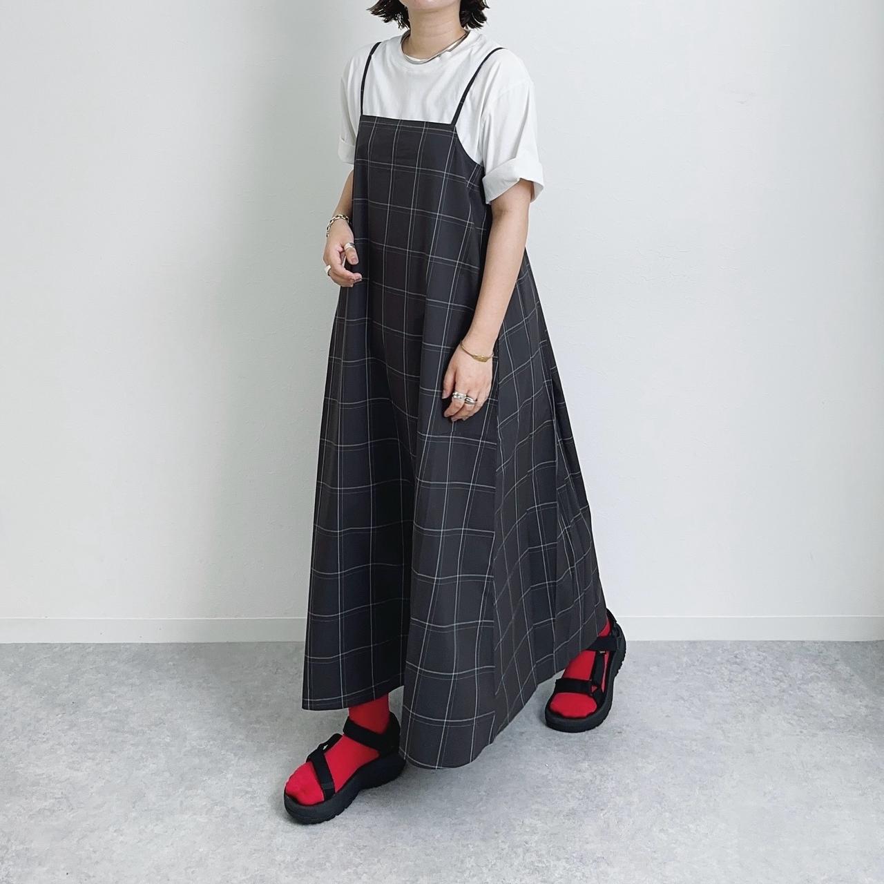 一点投入で映えそうなチェックキャミワンピ