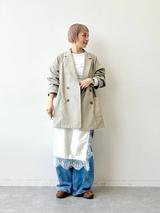 ワントーンコーデ × シルバーバッグ