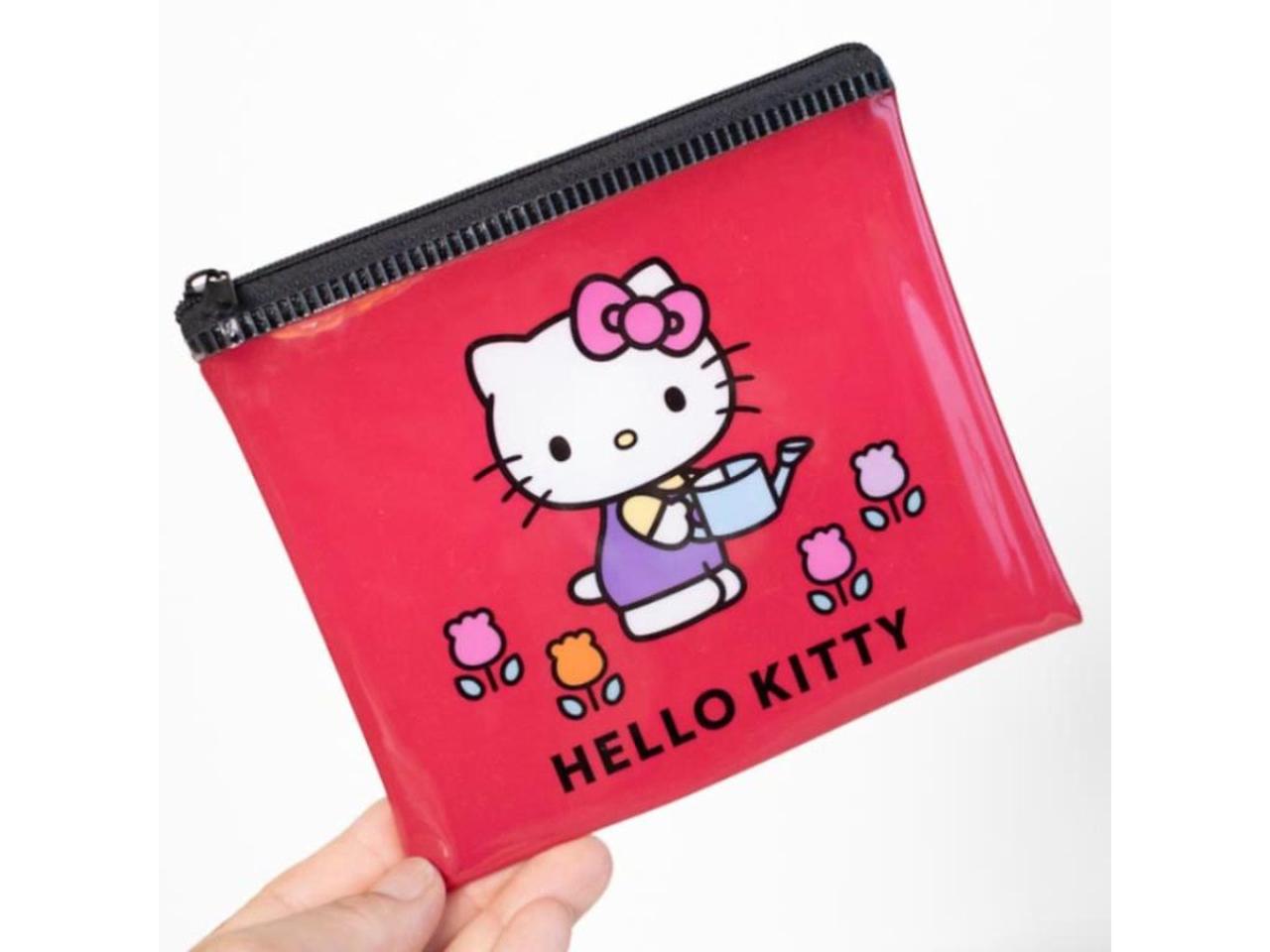 レトロなキティちゃんとチューリップが可愛らしいミニポーチ。懐かしさを感じさせるタッチや、鮮やかな赤い背景に乙女心をくすぐられるかも。小さめサイズなので小銭やアクセサリーを入れるのに重宝しそうです。フラットタイプなので持ち運びやすさも◎ 日々の癒しになってくれそうです。