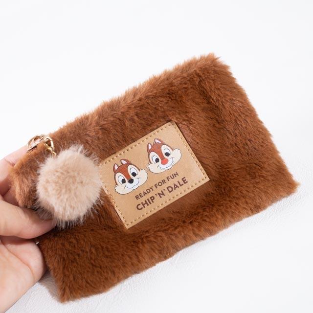 ブラウンカラーとふわふわの素材感が秋冬ムードを演出するポーチ。ファスナー部分のチャームも、キュートなワンポイントに。フロントにはチップとデールの顔がデザインされており、ファンなら持ち歩くだけで癒されそうです。フラットタイプなので、バッグの中でかさばりにくいのも嬉しいポイント。@ftn_picsレポーターとも*さんによると「口の部分が12cmも開くので、ガジェットや小物も入れやすい」とのこと。