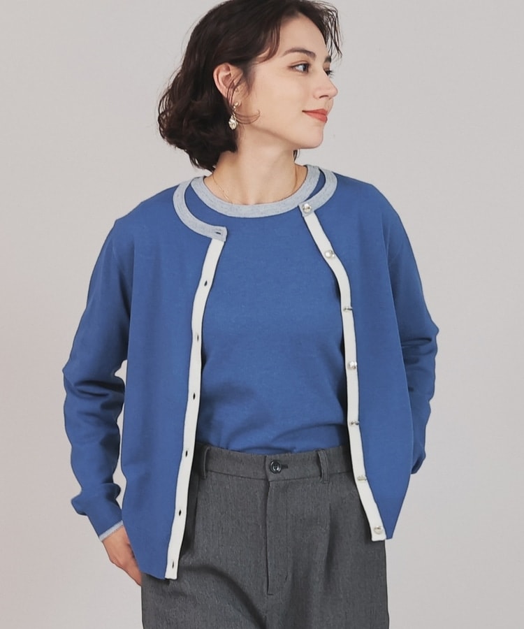 【GLACIER lusso】「配色クルーネックカーデ」¥3,980(税込)