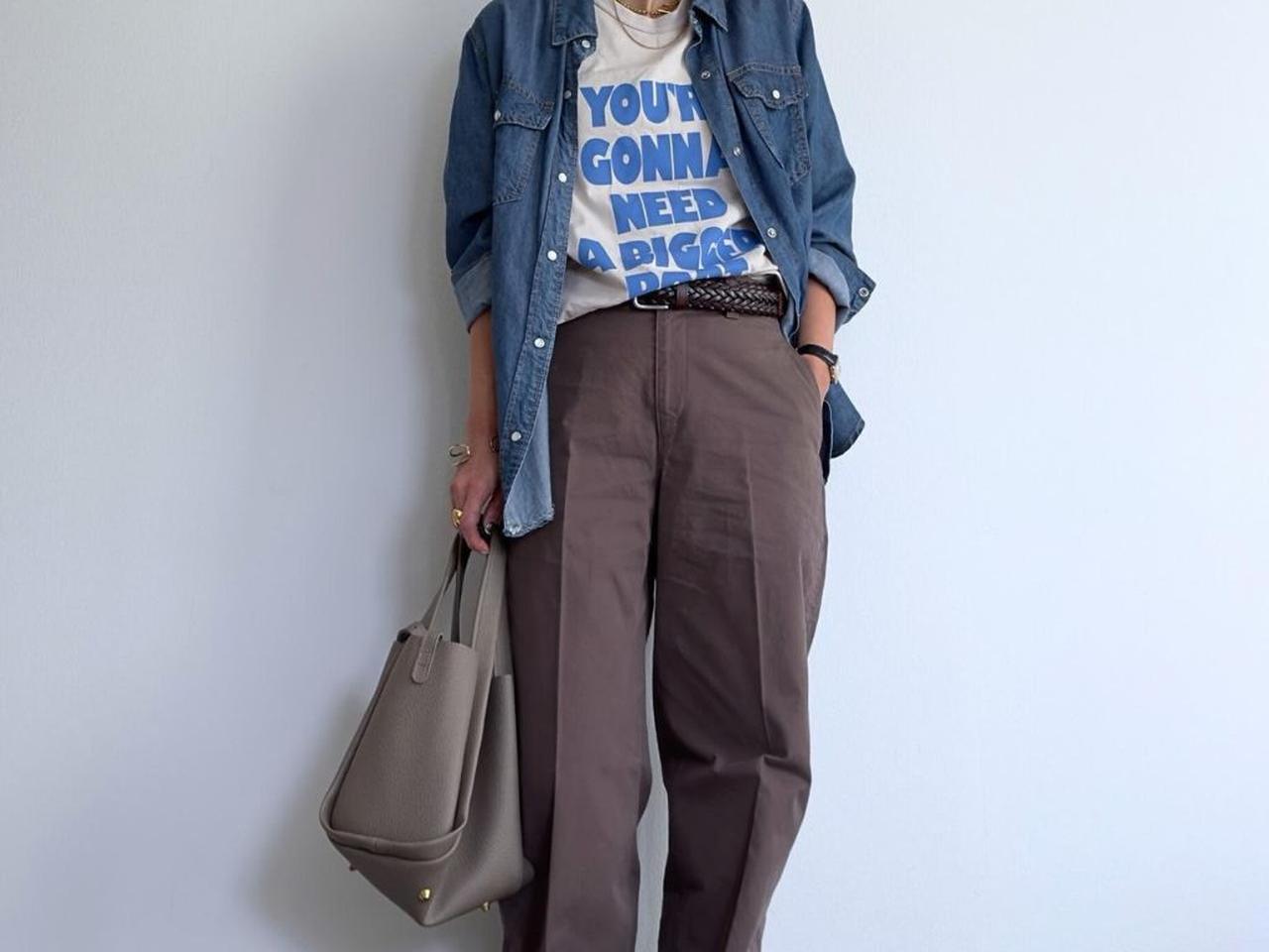 デニムシャツで“こなれ感”を意識した仕上がりに