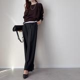 今季トレンドのブラウンカラーのコクーンパンツ。ほんのり丸みのあるシルエットで、きれいめにもカジュアルにも合わせやすそうなデザインです。プチプラには見えない上品な印象で、大人世代のデイリーコーデにも取り入れやすそう。ウエスト部分にはタックが入っていてきちんと感もあるので、オフィスや休日のお出かけにもはいて行けそうです。