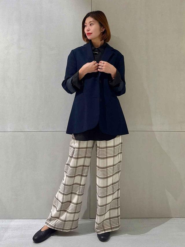 トレンドのチェック柄が目を引くワイドパンツ。「ふんわりとやわらかい」(公式サイトより)あたたかみのある起毛素材で、シーズンムードを盛り上げてくれます。カジュアルなスウェットシャツにもキレイめのシャツにも合わせやすそう。アイボリー・ダークグリーン・スモーキーブルー・モカブラウンの全4色展開です。
