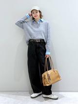スタッフHirokoさんは、「甘さとカジュアルをミックス」した「大人のリラックススタイル」を提案。可愛い印象を作れる淡いピンクのカーディガンを主役に、ボタンを1つ外したり、タックインしたりとアレンジを加えることでこなれ感のある着こなしを作っています。ほどよいボリュームのワイドデニムを合わせることで、コーディネートも今っぽく。