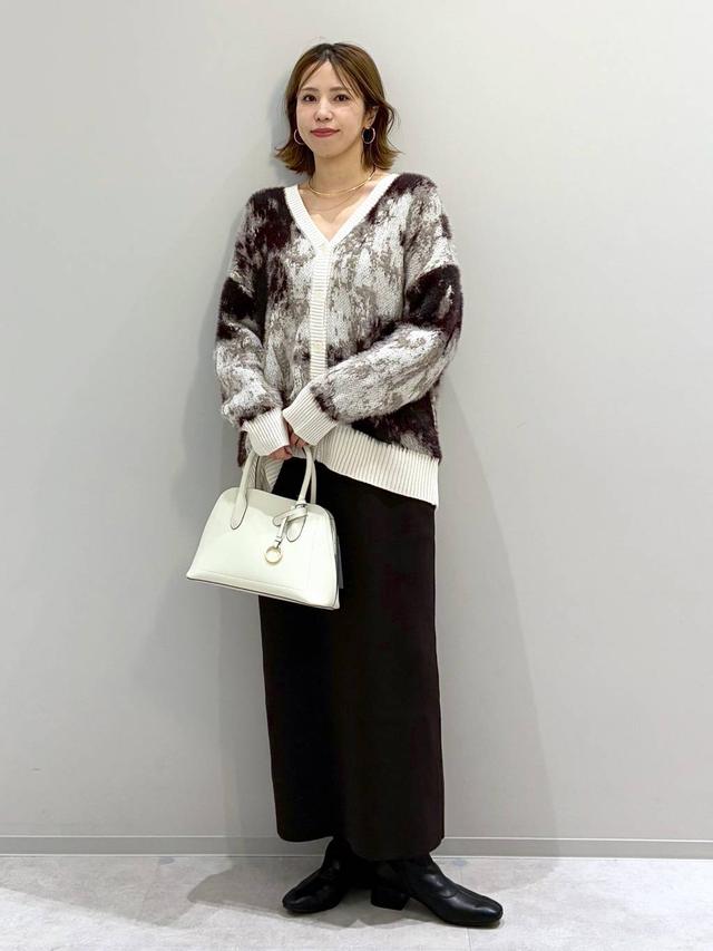 ふんわりとしたシャギー素材で、ニュアンスたっぷりの柄カーディガンが主役のセットアイテム。ボトムスはすっきりとしたリブスカートで、トレンド感を取り入れながらも上品にまとまるバランスが魅力です。カーディガンはVネックデザインで抜け感があり、顔まわりをすっきり見せてくれるのも嬉しいポイント。もちろんそれぞれ単品使いもできるから、着こなしの幅を広げたい人にもぴったりです。
