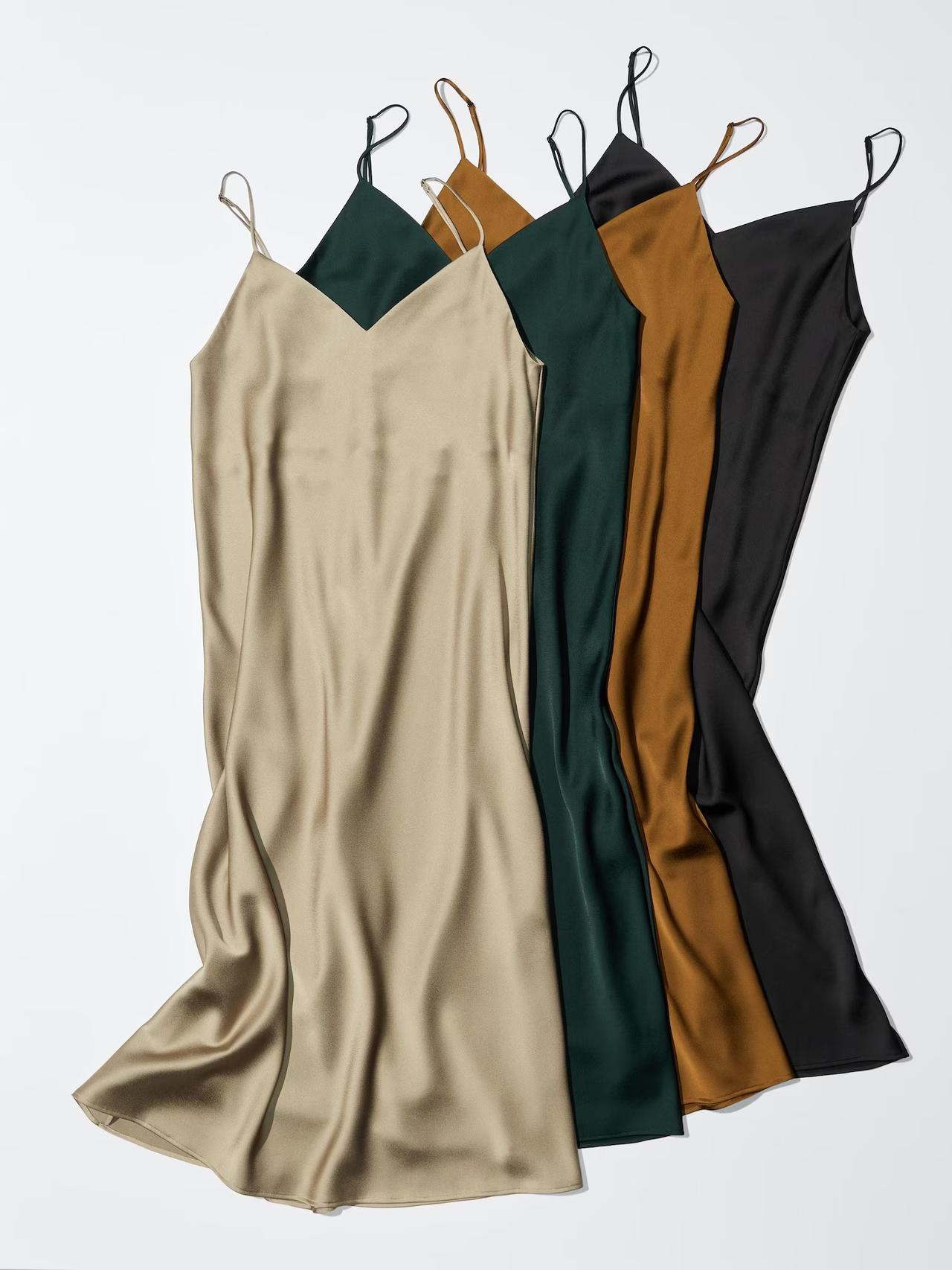 【ユニクロ】「サテンキャミソールワンピース」¥1,990(税込・セール価格)