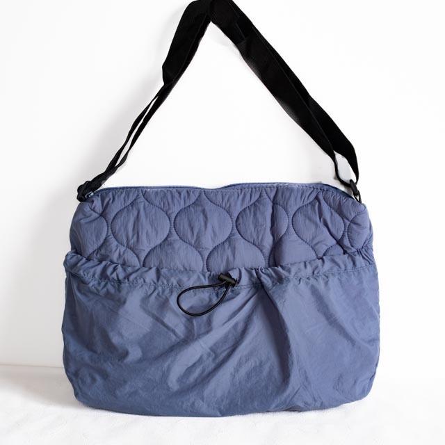 こなれたムードを醸すグレイッシュブルーのショルダーバッグ。@ftn_picsレポーターのとも*さんによると「A4サイズが余裕で入るサイズ」とのことで、荷物が多い日に重宝しそうです。ぷっくりとしたキルティングも、可愛らしいワンポイントに。外ポケットにはドロストが付いており、キュッと絞ることで中身が落ちにくくなりそう。シックな色味なので、通勤バッグにもぴったり。