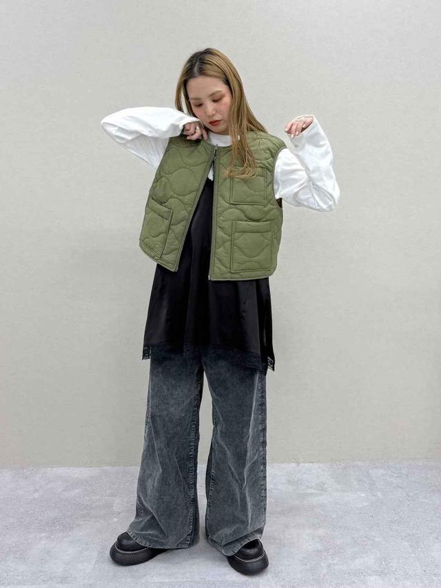 明るめのカーキ色で、ダークトーンに沈みがちな冬コーデにほどよい軽さを足してくれるキルティングベスト。コンパクトなシルエットでプラスワンしやすく、寒い時期にはインナーとしても活躍しそう。リバーシブル仕様で2通りのデザインが楽しめたり、Wジップで着方をアレンジできたりと、着こなしの幅を広げてくれる優秀アイテムです。