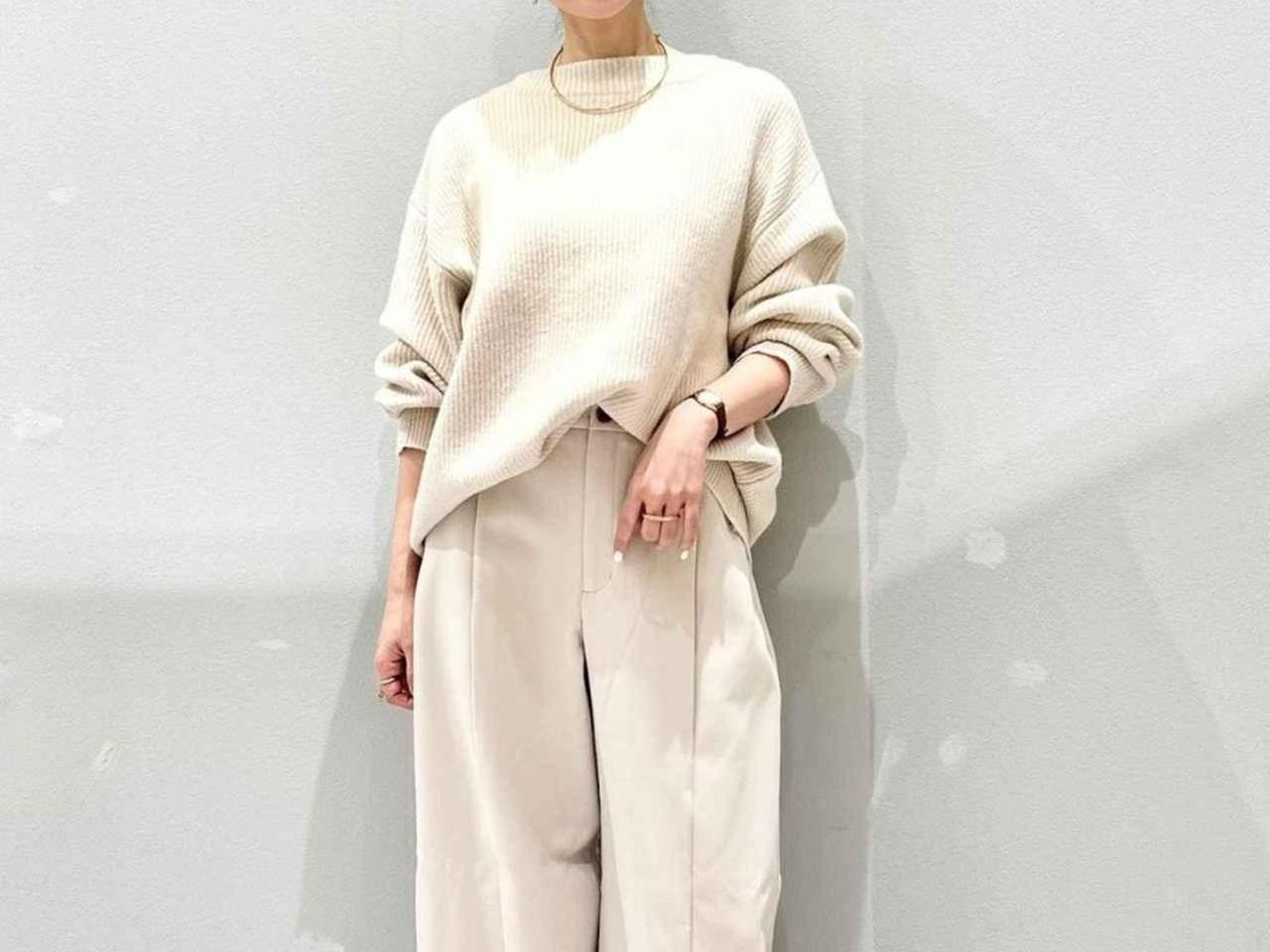 やわらかな色味で上品な雰囲気が漂うワイドパンツ。丸みを帯びたワイドシルエットでリラクシーな雰囲気ながらも、タックとセンターシームが縦のラインを強調してスッキリ見えを後押しします。裏起毛素材を使用しているのも嬉しいポイント。スナップのように同系色のゆるめニットトップスを合わせれば、シャレたムードの大人カジュアルコーデが完成。