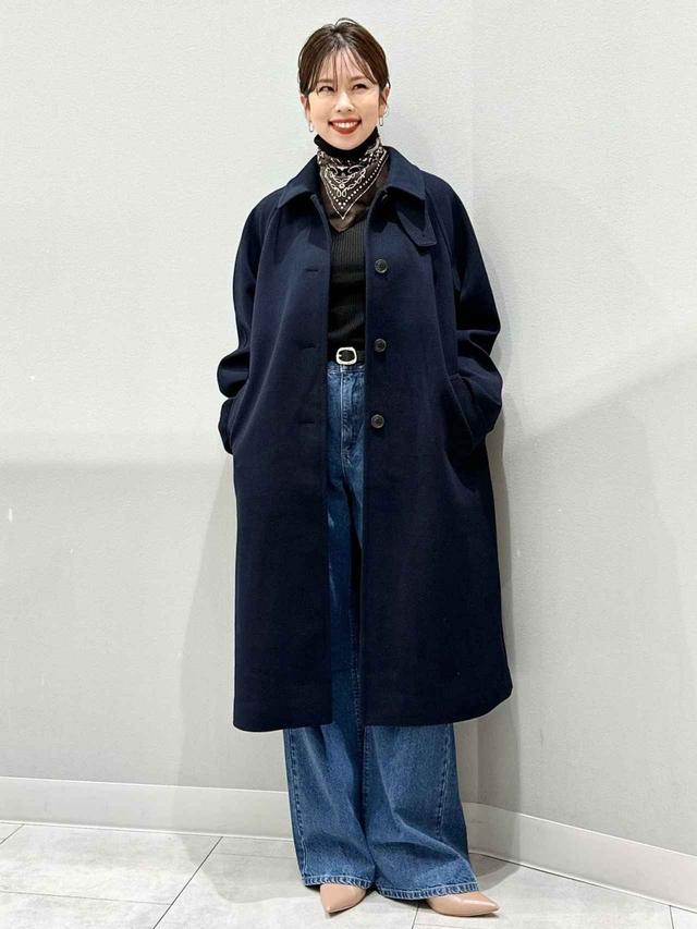 黒のタートルネックセーターとワイドストレートのデニムパンツの、スタイリッシュなコーデ。シンプルな組み合わせには、スカーフをプラスワンして大人上品に。エレガントなペイズリー柄が、顔まわりを華やかに演出してくれそうです。スカーフは2026年春夏トレンドとしても注目のアイテム。ぜひ積極的に取り入れてみて。