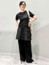 やや広めのネックラインのおかげで顔まわりが詰まって見えにくく、首元のすっきり感をUPさせてくれそう。1枚で着るのはもちろん、華やかなボウタイブラウスや襟付きシャツのレイヤードも気取った印象なくサマになりそうです。前後差を持たせた裾はラウンドカットに仕上げられていることで、抜け感も演出しやすいはず。