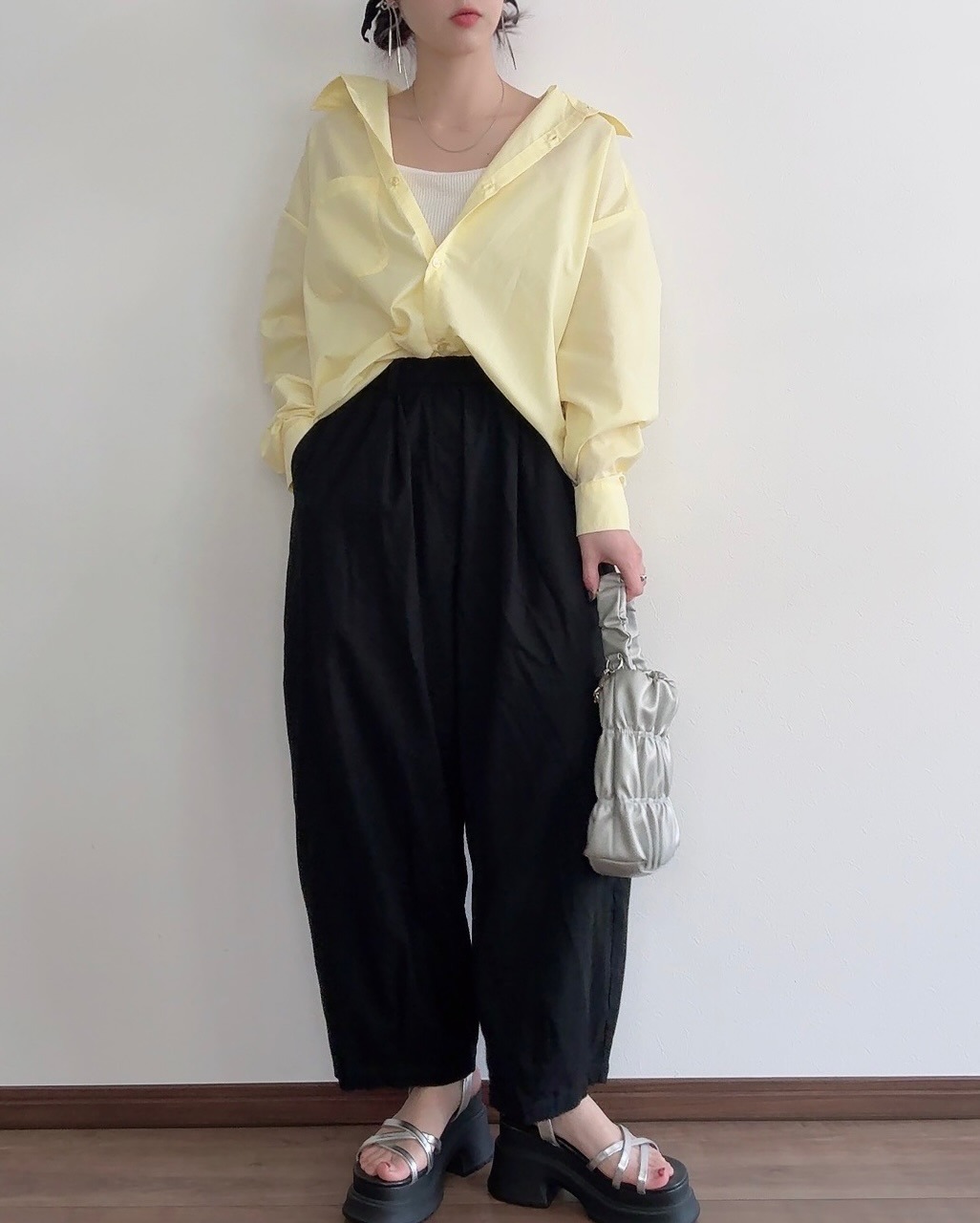 爽やかな色味で、顔まわりをパッと明るい雰囲気に見せてくれるイエローシャツ。シンプルなレギュラーカラーなので、オンオフ問わず着まわせそうです。@miu___wearさんが「夏もさらっと着られるし、冷房対策にもなると思う」と言う通り、ロングシーズン活躍する予感。一気に季節感が高まります。