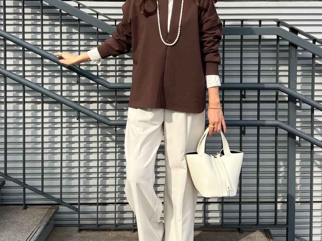 こちらは色違いのナチュラルを着用したコーデ。清潔感のある色味で、これからの季節はより出番が多くなりそう。鮮度アップを目指すなら、トレンドカラーであるブラウンのトップスと合わせてみて。白のタートルネックをレイヤードすれば、顔まわりが上品な印象に。足元にはレオパード柄のシューズを投入して、華やかなアクセントをプラスするのも垢抜けのコツ。