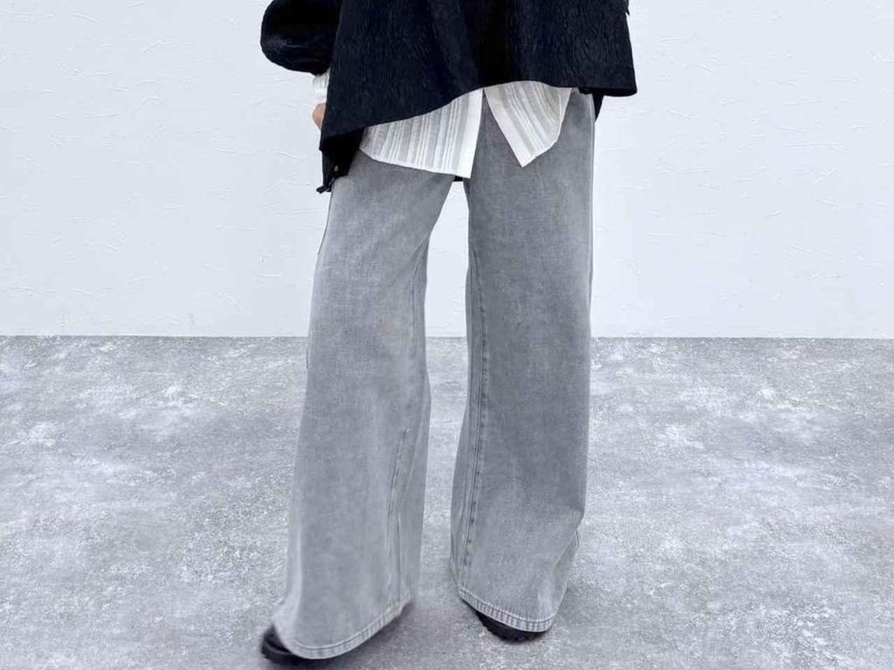 裾にかけて緩やかに広がったバギーシルエットのデニムパンツは、コーデに今っぽさとこなれ感を与えてくれます。そこにギャザーやペプラムシルエットのようなフェミニンなディテールのトップスを合わせれば、華やかな雰囲気が加わり絶妙な甘辛MIXスタイルに。シックなモノトーンカラーで統一して、上品さをキープするのがポイントです。