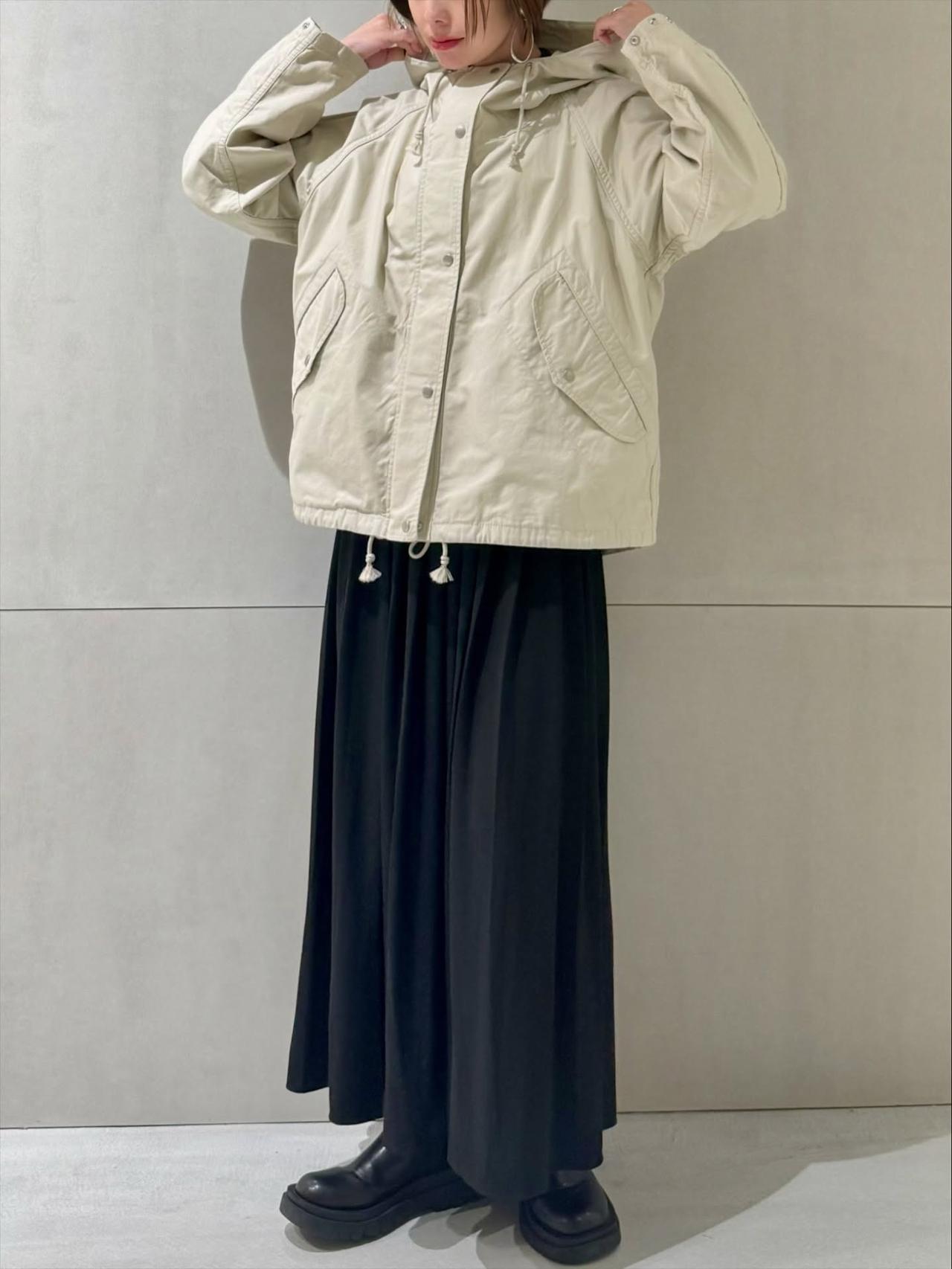 ほどよくハリのあるコットン素材で、デイリーからレジャーシーンまで着まわせそうなブルゾン。ゆとりのあるシルエットで、寒さが残る日に厚手のトップスを着込んでもリラクシーに着られそう。ショート丈なので重たく見えにくいのも嬉しいポイントです。裾のドロストを絞れば、丸みのあるシルエットに変えられます。