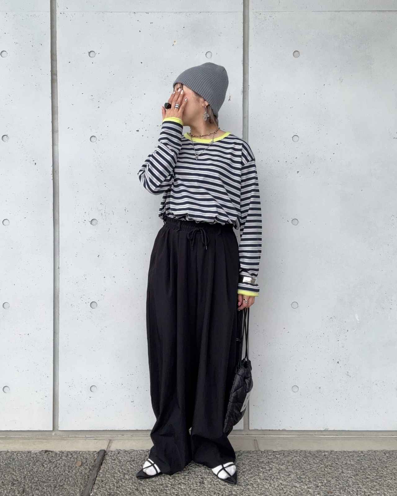 爽やかなボーダー柄と配色のデザインが、シーズンムードを盛り上げてくれるTシャツ。まるでレイヤードしたような着こなしが1枚で完成するので、コーデに迷ったとき頼りになりそうです。ボトムスや小物を黒で揃えたコーデも、袖と襟元の明るい配色で華やかな印象に。スウェットパンツと合わせてカジュアルに仕上げるだけでなく、フレアスカートでフェミニンに引き寄せるのも◎