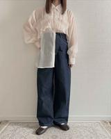 ワイドシルエットながら、ピンストライプ柄でスッキリ見えるイージーパンツ。清涼感たっぷりの水色は、コーデに一点投入するだけで着映えしそう。しまむら大好きインスタグラマーの@aiii__13kさんも「可愛すぎ」「お値段もびっくり」とコメント。コンパクトなトップスにシアーチュニックを重ねて、腰回りをさりげなくカバーした旬のレイヤードスタイルを披露しています。