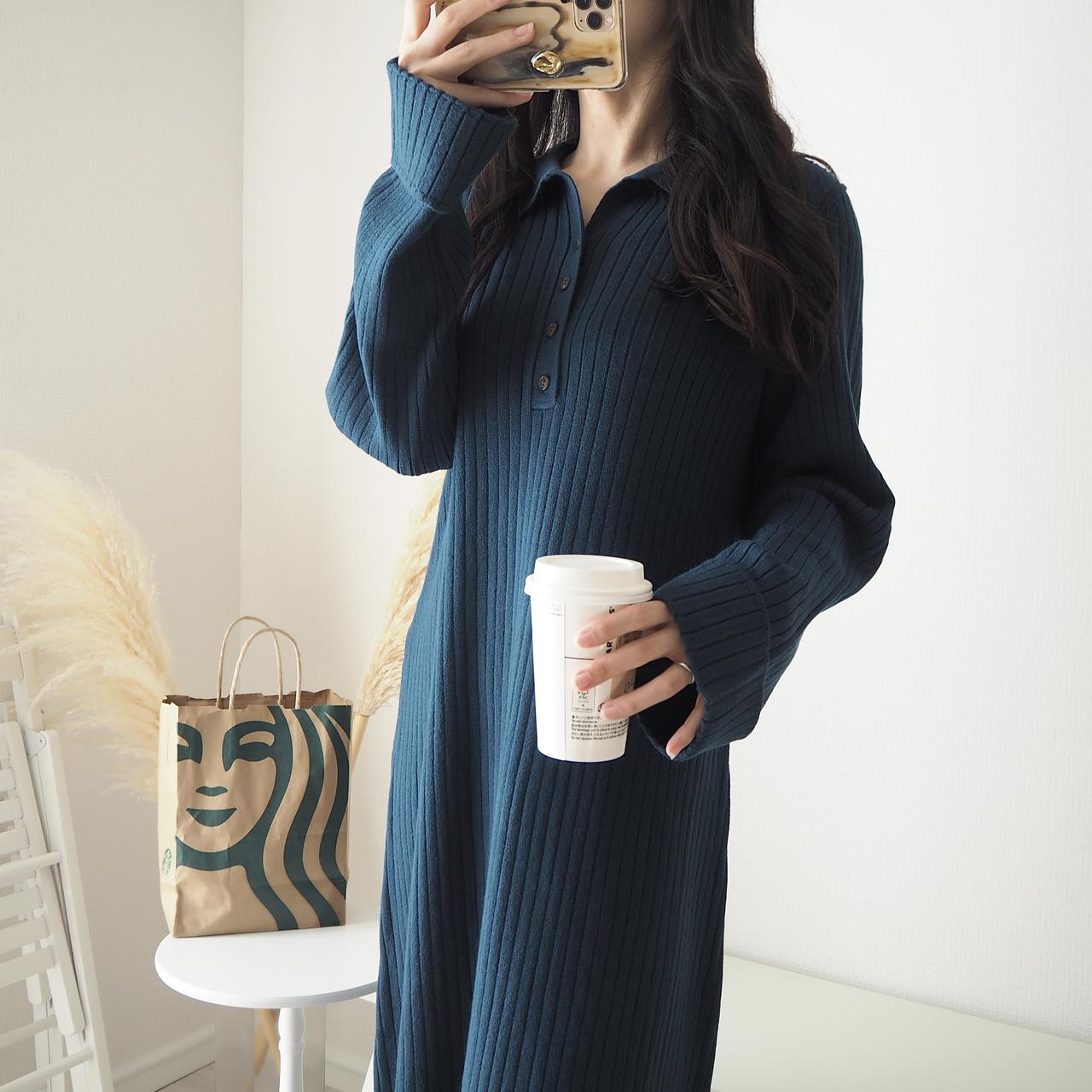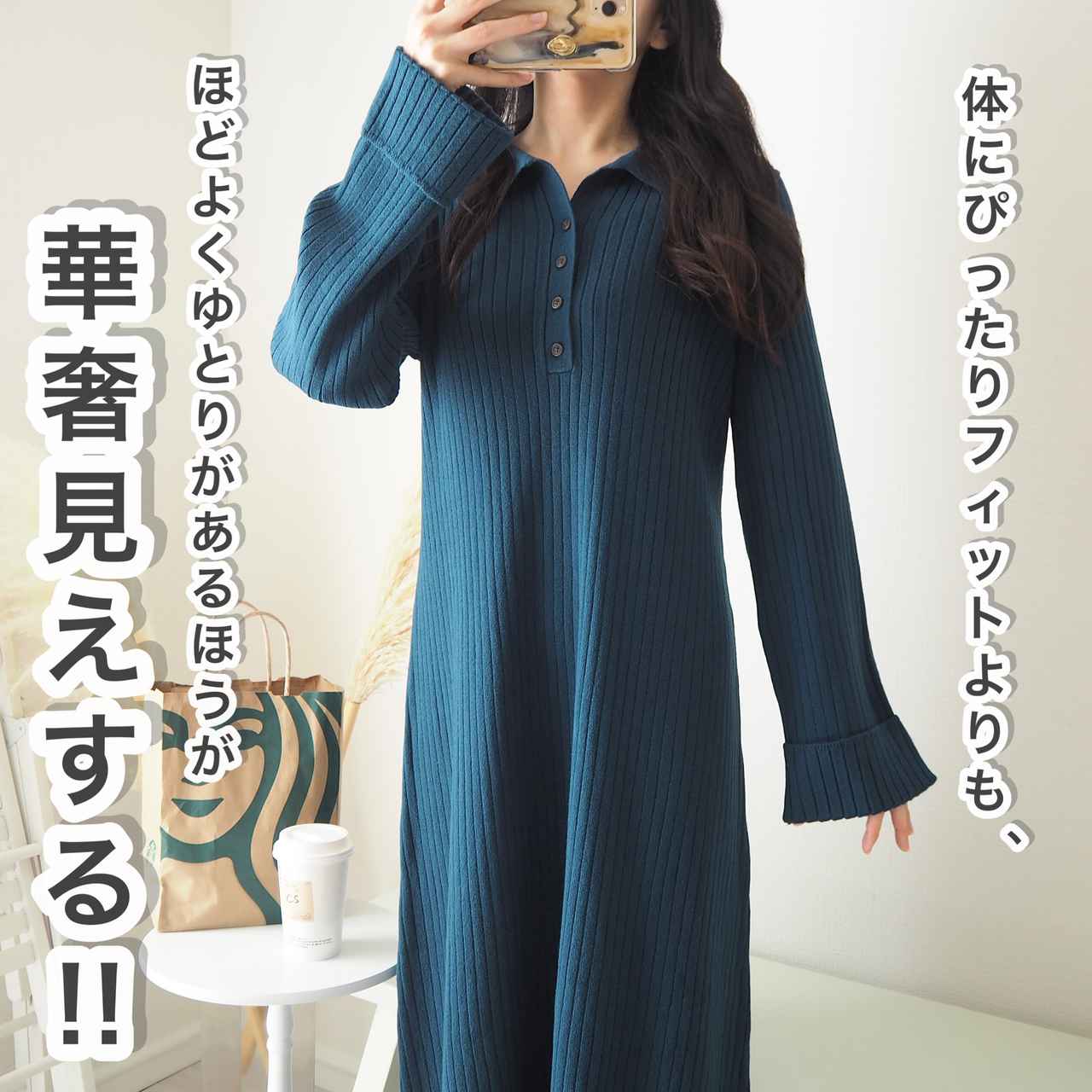 ニットワンピといえば女性らしくてちょっとセクシーなイメージを持ちますが、これはポロ襟が付いていることでカジュアルに着こなせる!