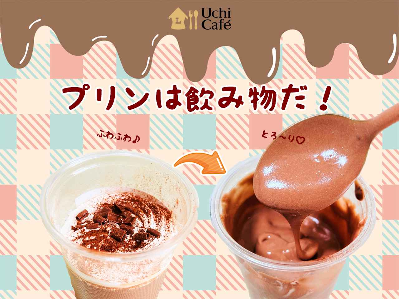 プリンの「ぷるふわ♪」食感、ドリンクの「とろとろ♡」食感が楽しめます。プリンとドリンクを半分ずつ味わったり、最初からどちらかで味わうも良きと、お好みで食べてください。