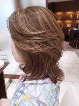 ボブベースのウルフヘアはキュートな雰囲気に仕上げたい人におすすめ。こちらは襟足を短めに仕上げた丸いフォルムが特徴。くびれラインも控えめに作り、優しい雰囲気のウルフカットに仕上げています。ウルフカットはどんな年代にもマッチする万能なヘアスタイル。ぜひ一度チャレンジしてみて。