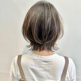 前髪以外をワンレングスで切りっぱなしにした肩ラインのほつれボブは、ヘアアレンジも楽しめる優秀スタイル。明るめのヘアカラーが垢抜けた雰囲気を加えてくれるはず。美容師の@domiyasuさんはブローだけでまとまるスタイルを心がけているそうなので、セルフスタイリングが簡単そうなのも魅力ポイントですよ。