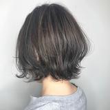 透明感のあるグレージュカラーがやわらかく映えるショートボブ。後頭部にふんわりと丸みを出し、ボリューム感をさりげなくプラスしています。襟足は首に沿うようにコンパクトにまとめて、シルエットに奥行きを。短すぎないバランスで、大人らしい上品さを保ったスタイルです。