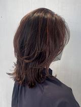 最初にご紹介するのは、暖色ブラウンが映えるレイヤーミディ。毛先をワンカールでまとめ、筋感を残しながら動きを出しています。全体に柔らかな艶があり、程よく華やかな印象に。軽やかさの中にも落ち着きを感じるスタイルで、毎日のヘアセットが楽しくなりそうです。
