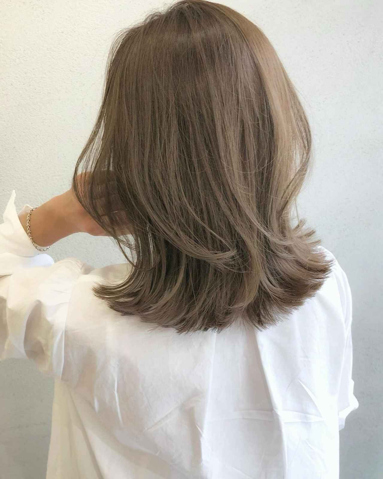 グレージュが冴えるゆるくびれのミディアムレイヤー