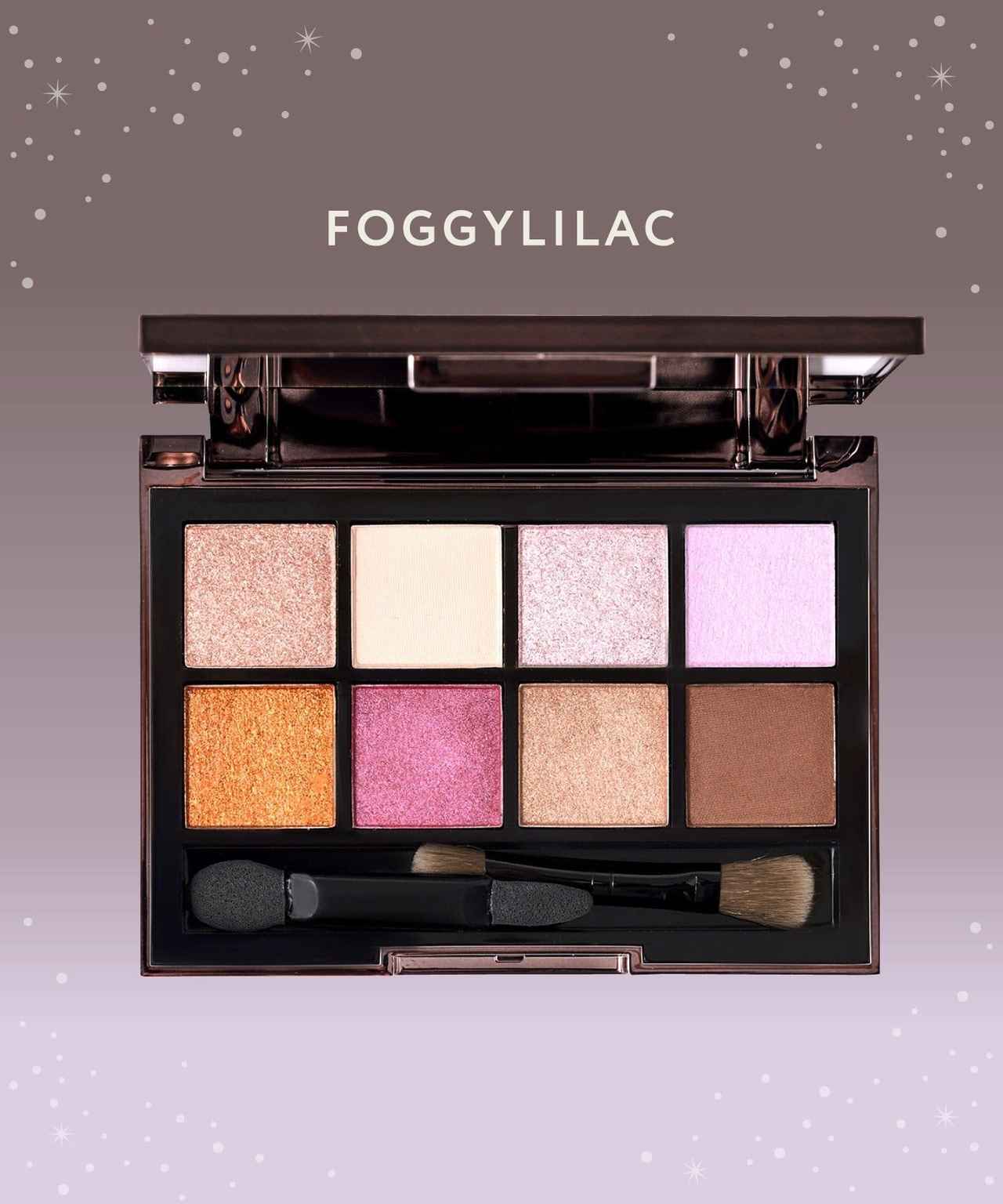 たっぷり8色が入ったアイパレットは、ベージュ系、ローズ系、ライラック系の3種展開。写真のフォギーライラックは、まるで宝石を詰め込んだようなビジュアルで、目元に透明感を添えてくれそうです。マットやラメなど異なる質感が入っているので、重ね方で落ち着いた印象から華やかなきらめきまで調整しやすいのも、嬉しいポイントです。