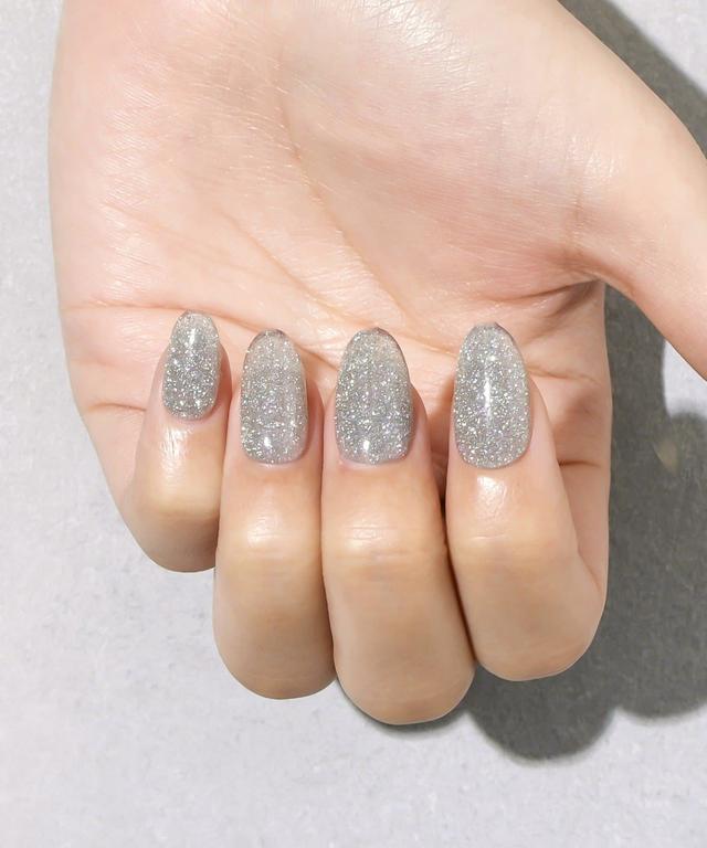 「フラッシュスティックネイルジェル/and us」は、強い光に当たると強く反射して輝くフラッシュネイルジェル。写真を撮るときには、フラッシュを焚いて撮影することで、よりキラキラ輝くのが特徴です。光の当たらない日中は落ち着いた雰囲気に、夜のイベントではひときわ華やかに見えるので、ホリデーシーズンの普段使いにもぴったり。
