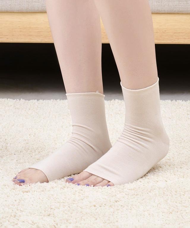 乾燥しやすいかかとをケアするなら、こちらのソックスが便利。公式サイトによると、「荒れやすいかかと部分にはシリコーンシート付きでかかとの保湿をサポート」とのことで、クリームやバームを塗布した足をやさしく保護してくれそうです。通気性の良いオープントゥ仕様でムレにくく、寝ながらでも快適に使えるかも。