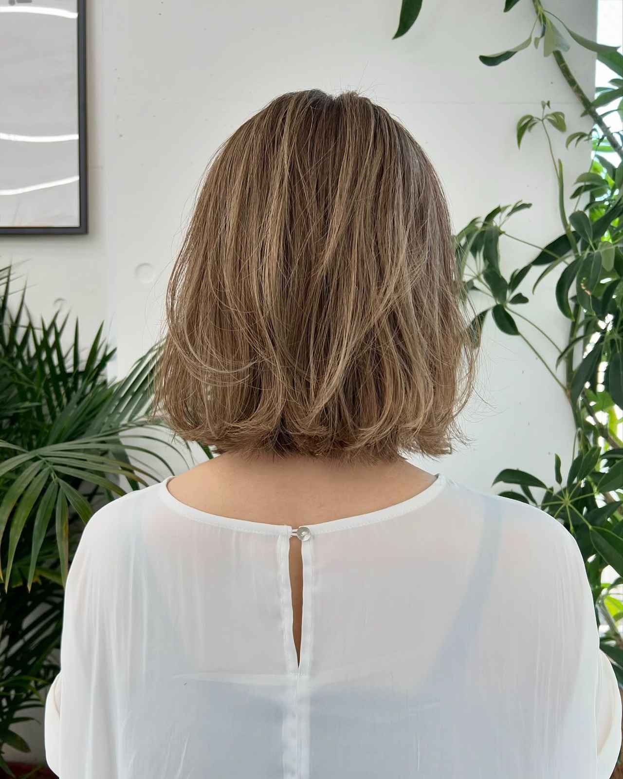 インフルエンサーの@acco.mamaさんは「40代最強ボブヘア」とコメントを添えて、ご自身のヘアスタイルを投稿。「白髪気になるひとに激しくオススメしたいスタイル」なのだそう。ラフな抜け感のあるスタイリングはもちろん、髪色にも注目してみて。全体は明るめベージュで、髪を筋状に明るくするハイライトをところどころに散りばめたデザインカラーがオシャレ見えのポイント。白髪で悩んでいるようには見えない、垢抜けた仕上がりです。
