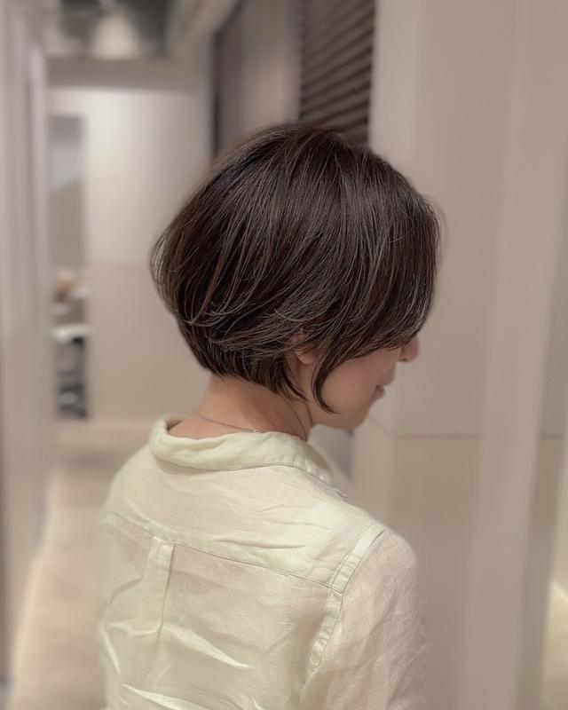 @chikara.ito___さんが「髪が綺麗に見えるくすみブラウン」と解説しているカラーリングで仕上げたショートボブ。「柔らかく毛先が動くようにカットすることで、クセやパーマが活きてきます」とのことで、クセ毛や髪のうねりに悩んでいる人もぜひ検討してみてください。ほどよい重さで髪を豊かに見せつつ、大人らしい上品さが漂うヘアスタイルです。