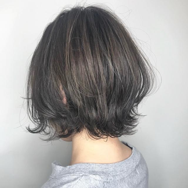 ボブの扱いやすさを残しながらウルフの要素を加えた、プチウルフボブ。トップの長さが首元までしっかりあるため、レイヤーを入れていてもまとまりやすくなっています。ベースはその下から覗くように外ハネをつけて、くびれを形成。メリハリがありつつも、ベージュの柔らかい色味との効果で、上品な印象に仕上がっています。