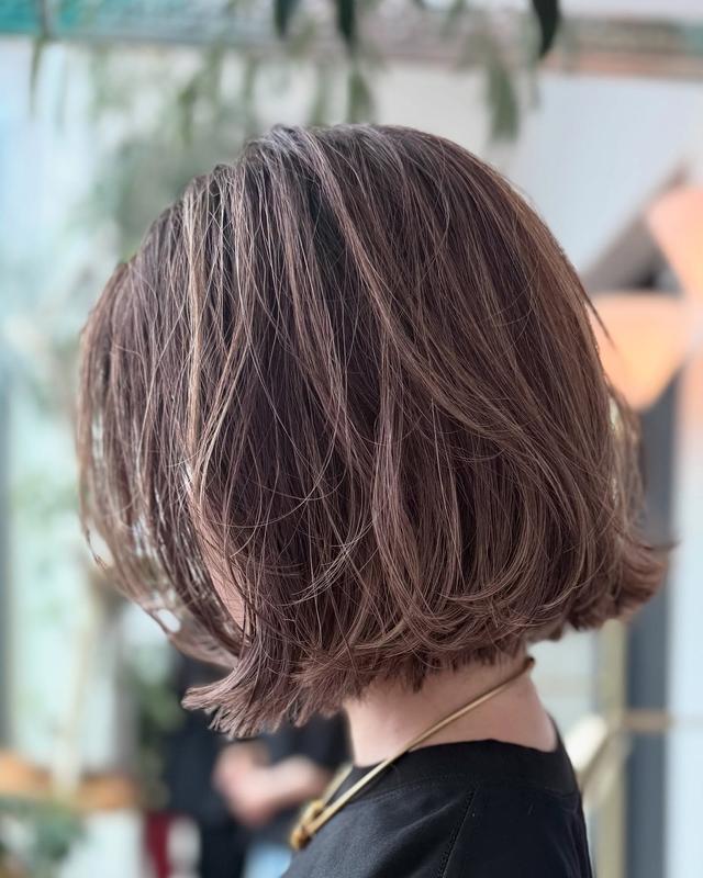 ラフなスタイリングがおしゃれなハイライトボブ。ハイライトが白髪を馴染ませながら、髪に立体感をプラスしています。@acco.mamaさんによると、スタイリングは「毛先を外巻きにしてハチ上を内巻きするだけ」とのこと。ハイライトを入れることで、おしゃれなニュアンス感も演出できそうです。